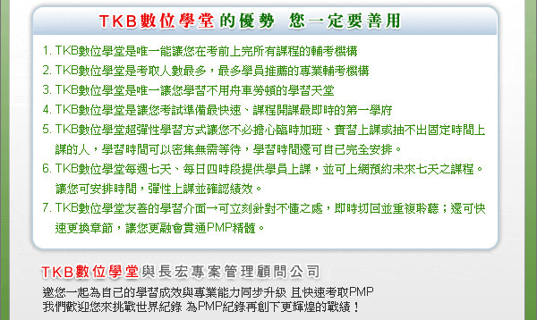 歡迎回應本文或來電預約 6/25(三) 19:00 PMP說明會,