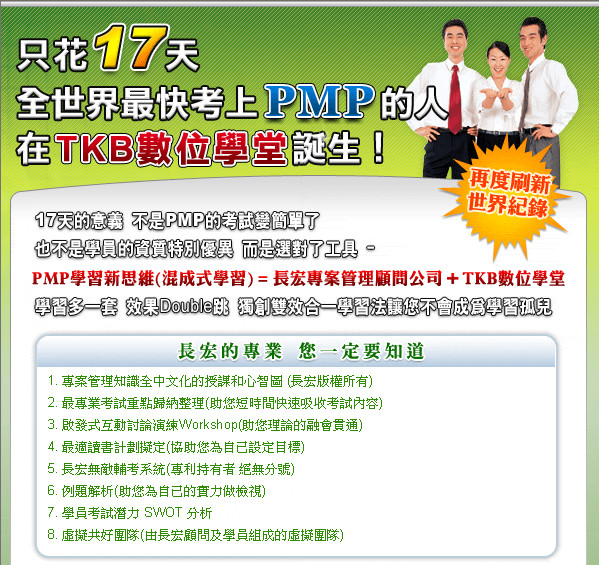 上班族若想為薪水加值,建議利用下班時間進修「PMP國際專案管理師證照」課程,曾創下學員17天考取PMP證照的TKB數位學堂,彈性上課、專業師資,是上班族進修首選!