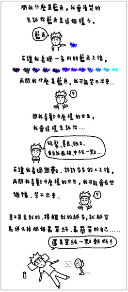 我在尋找一份熟悉的感覺,一種溫暖、一種自在、一種信任,一種我也不完全說得上來的感覺。一直都以為自己知道所謂的,很多東西,過了,就再也回不去了。直到現在,當我體認到一股揮之不去的孤寂的時候,我才真正了解其中的意義。