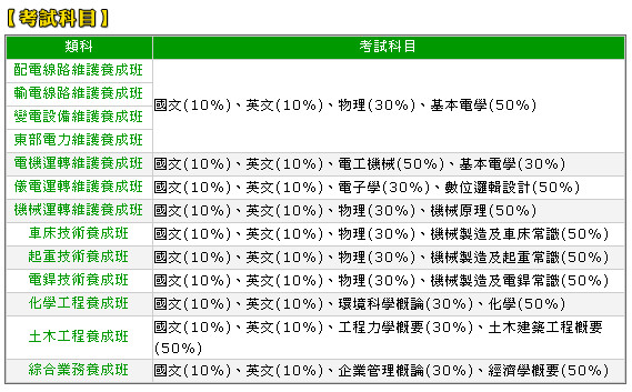 據消息指出,台電養成班將於下半年度10月份舉行招考,每年約有四千元調薪動作的工作,在這個不景氣的時候,已不是一般企業所跟的上的瀀渥調薪條件,成為正式員工的起薪為二萬九千元,每年逐一調整,到了第四年,薪資可達到三萬九千元,要邁入月薪四萬元,已不是難事,除了”豐富”的獎金以外,用電量半價優惠,更是吸引人的一大條件之一,由於報考條件門檻低,幾乎人人有機會,只要你肯努力,加上TKB數位學堂特別針對你的狀況,為你量身打造學習進度,要上榜,肯定人人有把握。